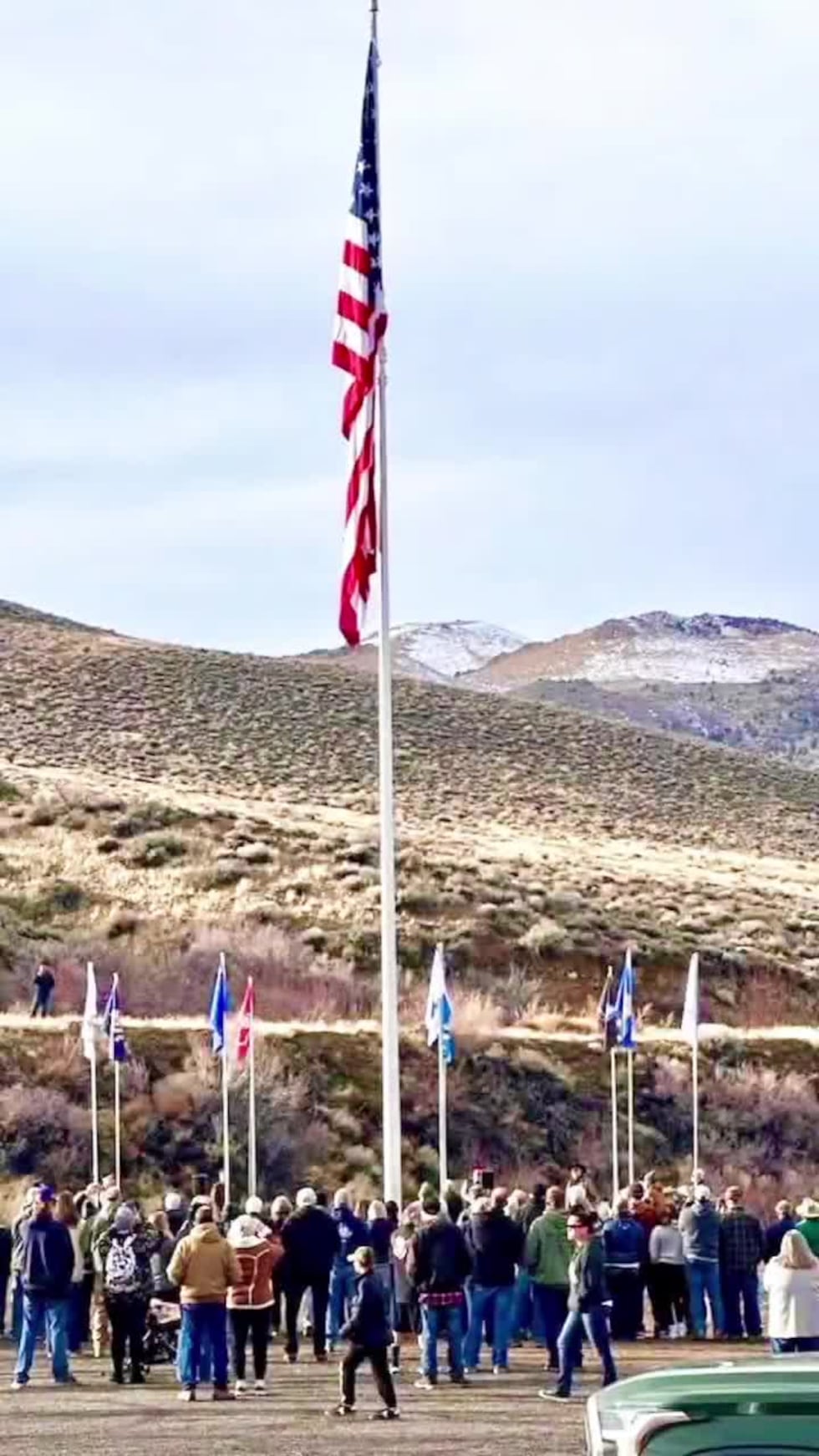 RENO, NV (KXNV) - Para conmemorar el 250 aniversario de la independencia de Estados Unidos, una imponente bandera gigante ha sido izada en el pequeño pueblo de Wellington, en Nevada.